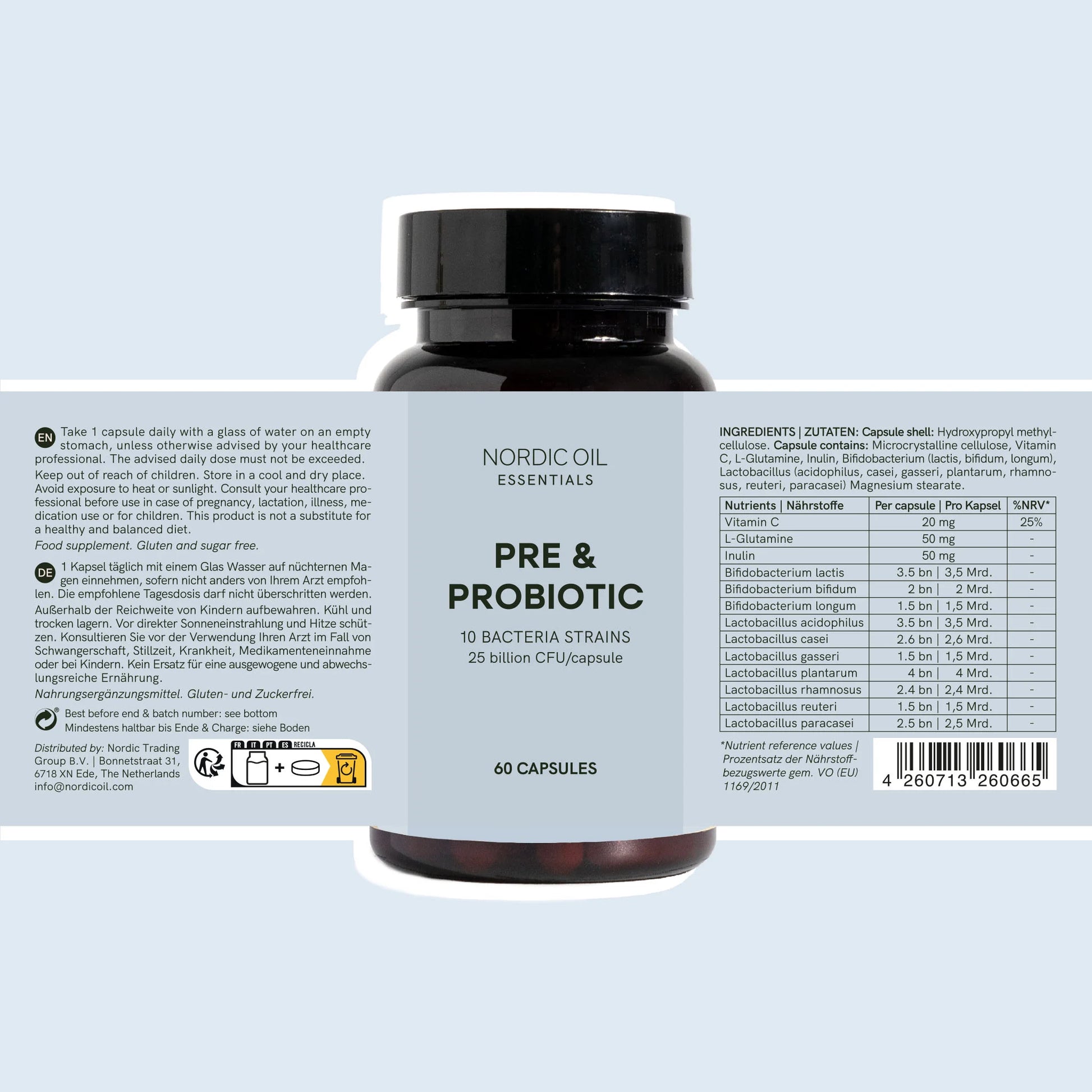 Nordic Oil Essentials Probiotics is a carefully formulated food supplement for those who want a high-strength, everyday way to top up their intake of live bacterial cultures. Each bottle contains 60 easy-to-take capsules, providing a convenient two-month supply when taken as directed.