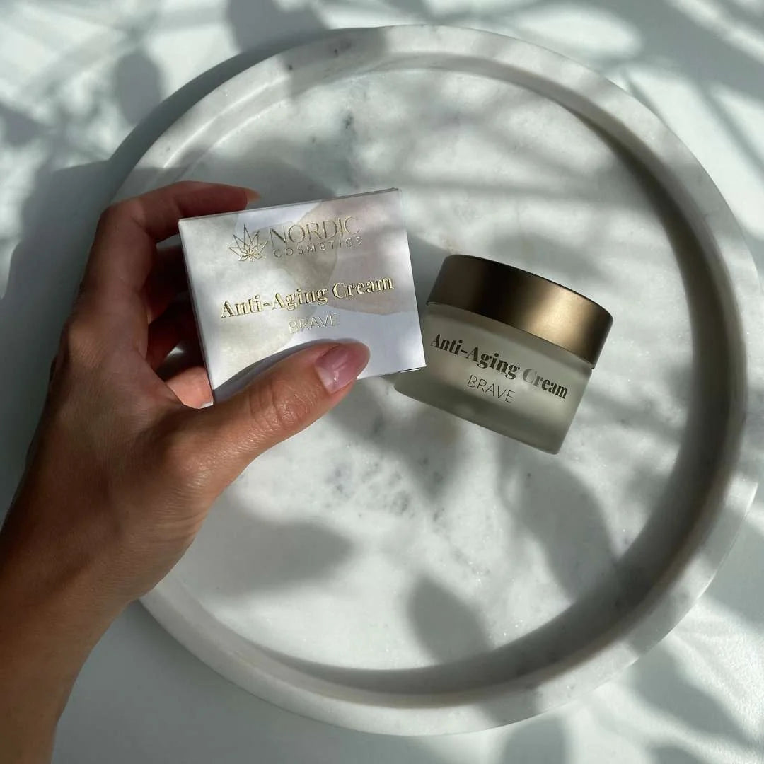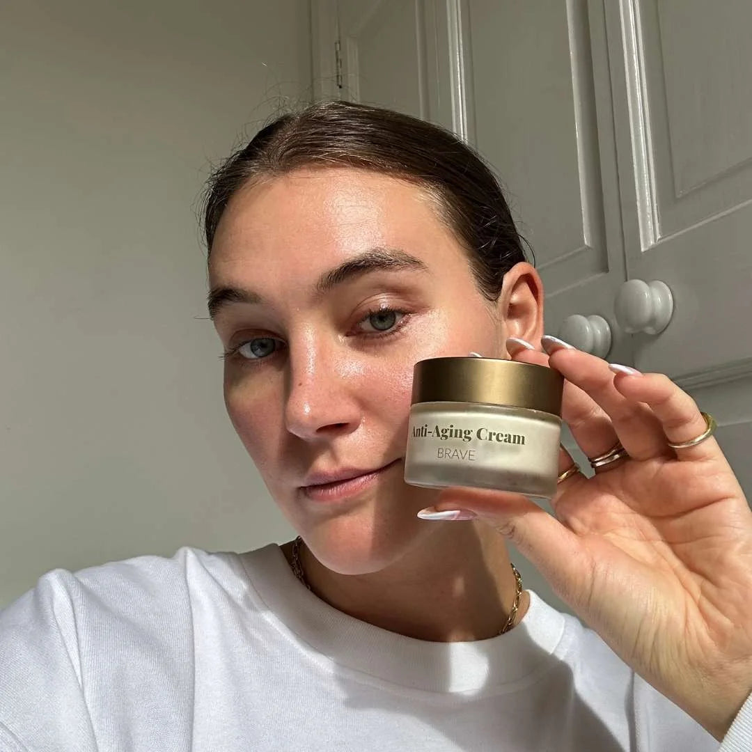 The Brave Anti-Aging Cream is absorbed quickly into the skin, protecting it from harmful environmental aggressors and combatting visible signs of premature aging and pigment spots caused by sun exposure.