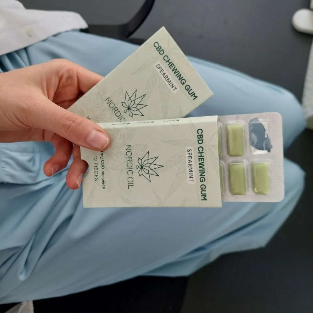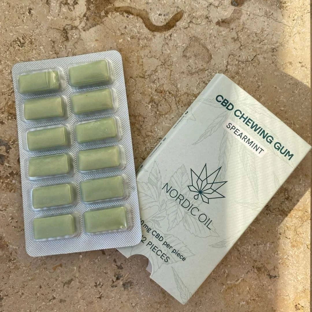 CBD chewing gum, as suggested by the name, is a chewing gum infused with CBD. Nordic Oil’s CBD chewing gum is characterised by a refreshing taste of mint and eucalyptus. One piece of gum contains 5mg of CBD.