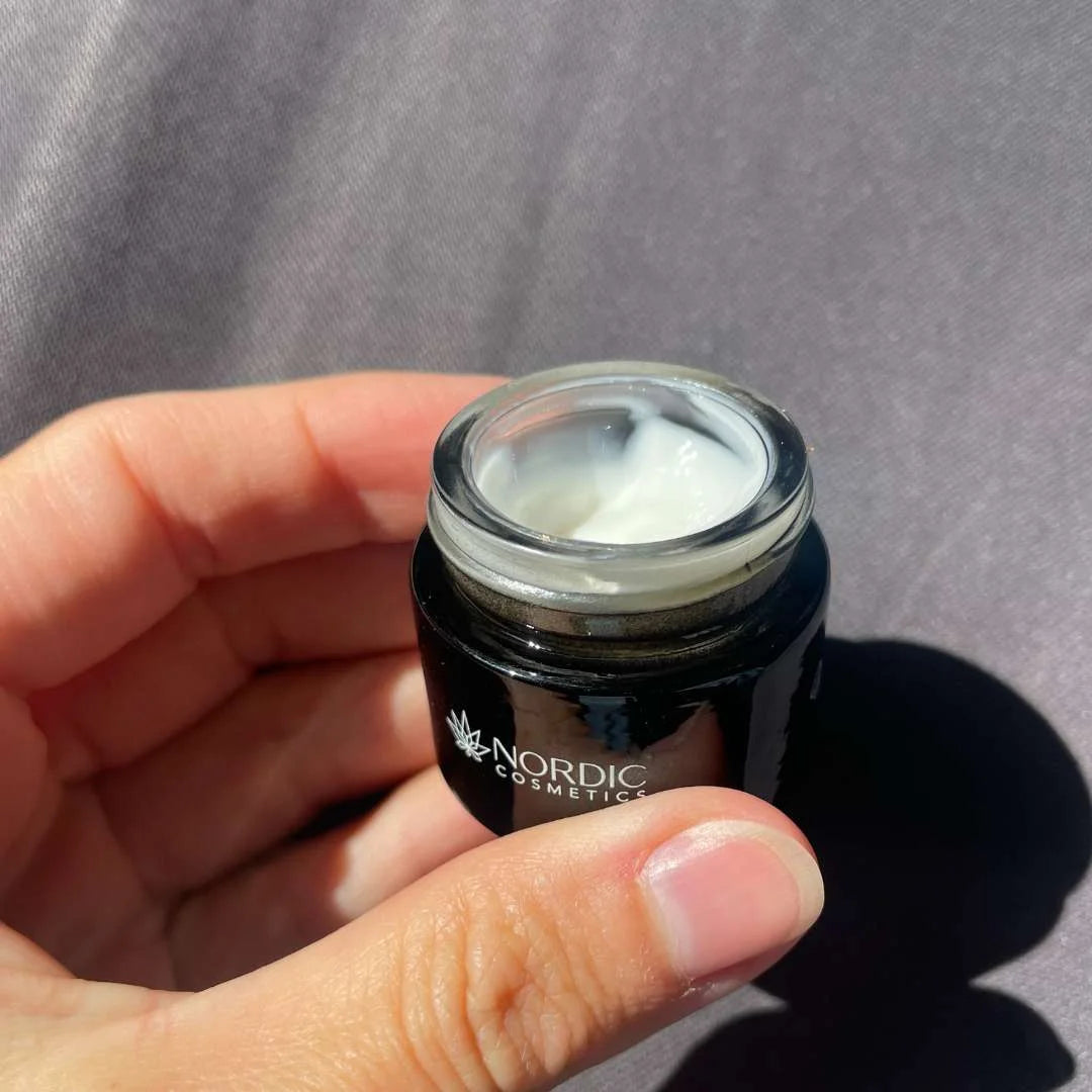 Developed to help reduce visible signs of ageing and tiredness, our Eye Cream uses only vegan ingredients to make the skin around the eyes appear firmer and more youthful-looking. Our soothing and nourishing cream combats dull, puffy eyes and dark circles leaving the skin smoother, brighter and endlessly radiant. The pleasant and natural fragrance invigorates the senses and intensifies the holistic care experience and the hyaluronic acids works to thoroughly hydrate the skin. Nordic Cosmetics Eye Cream contains 20mg of CBD. This product has not been tested on animals, nor has it been evaluated for safety through animal testing