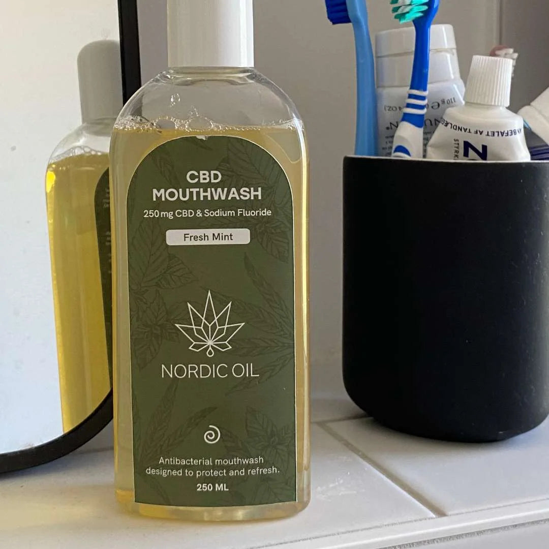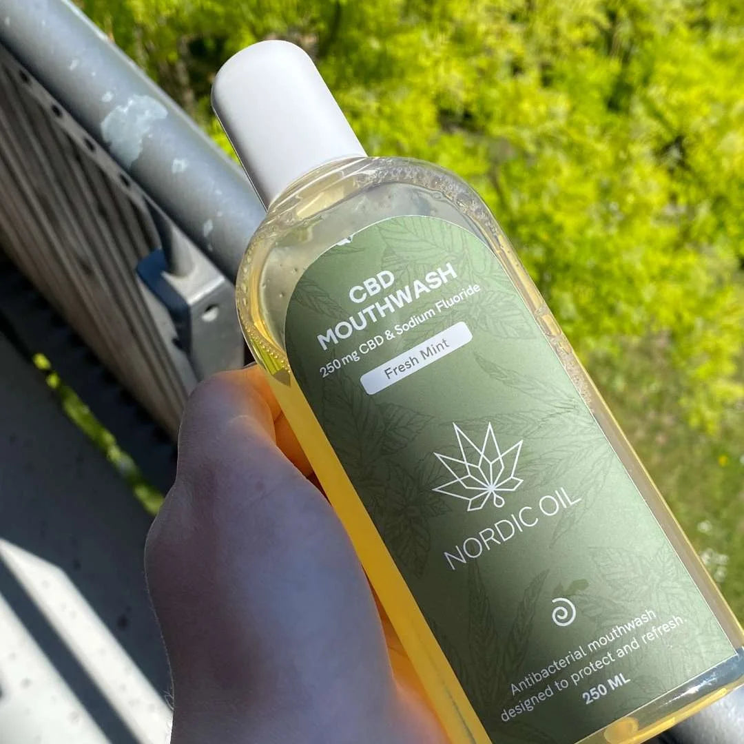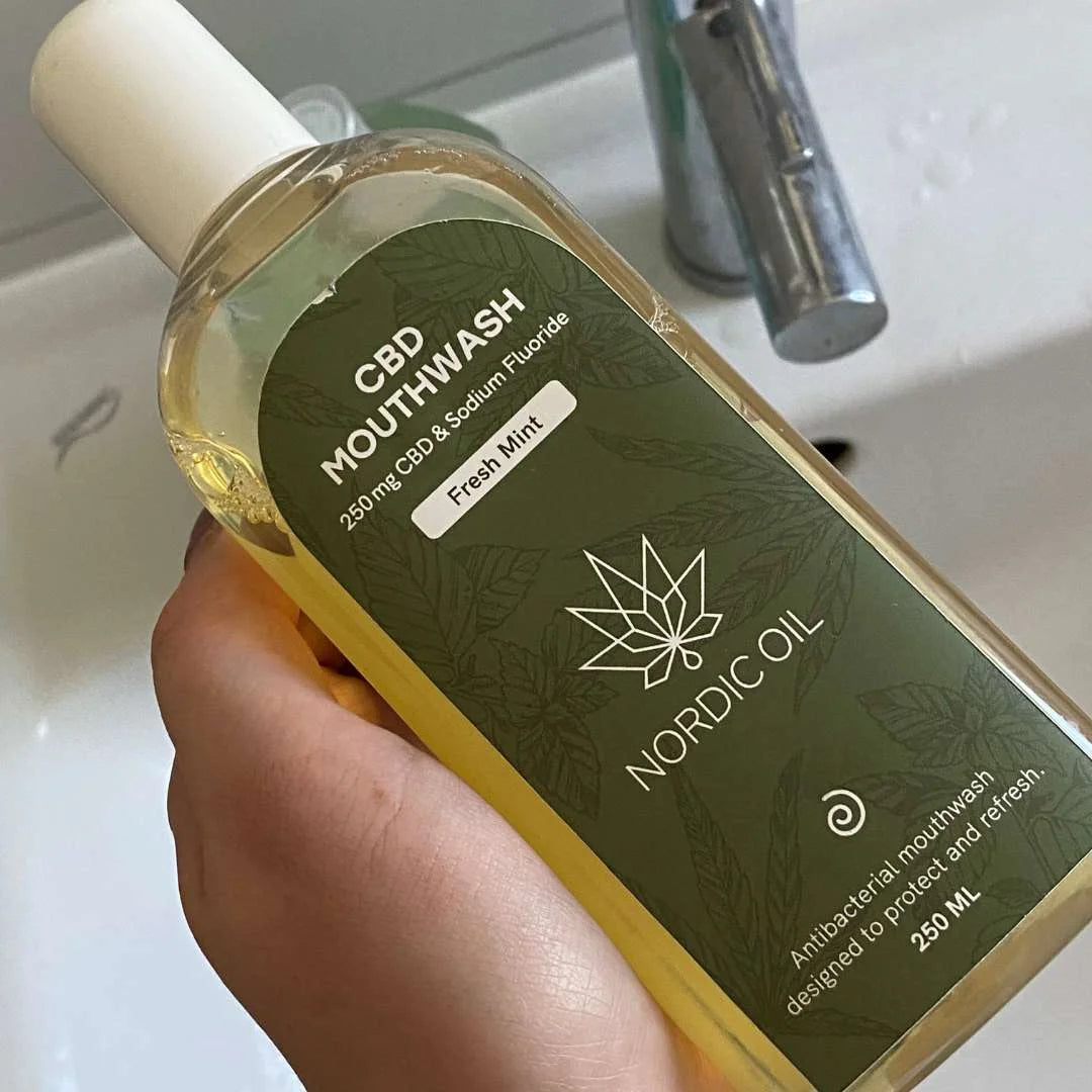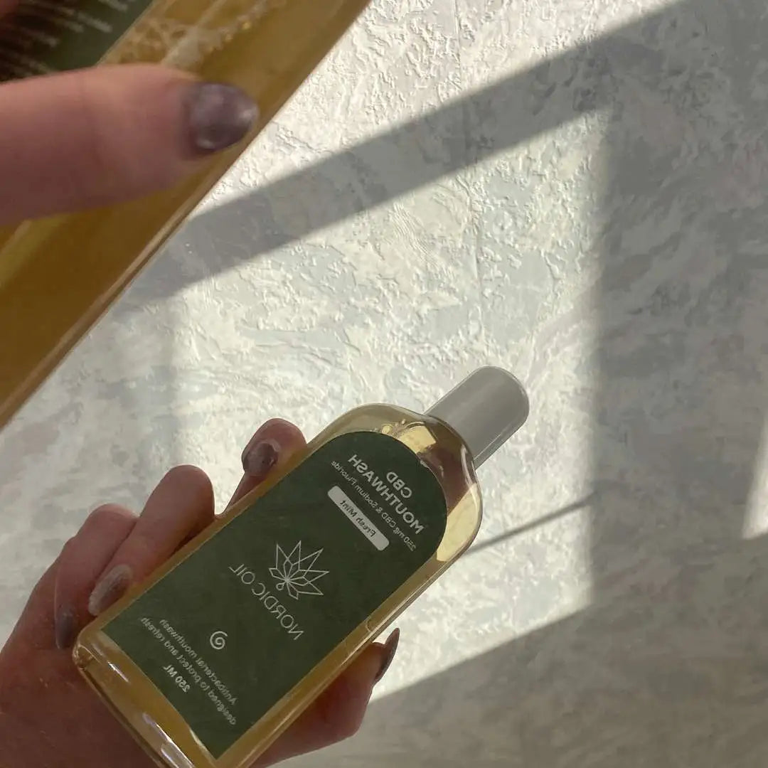 As Nordic Oil's CBD mouthwash is alcohol-free, it is particularly gentle on the oral mucosa and gums. Unlike traditional mouthwashes containing alcohol, it does not cause a burning or sharp sensation when rinsing. Many users report a pleasant, fresh feeling in the mouth and an effective, soothing effect without any irritation. The alcohol-free formula is therefore also suitable for people with sensitive gums or mucous membranes.