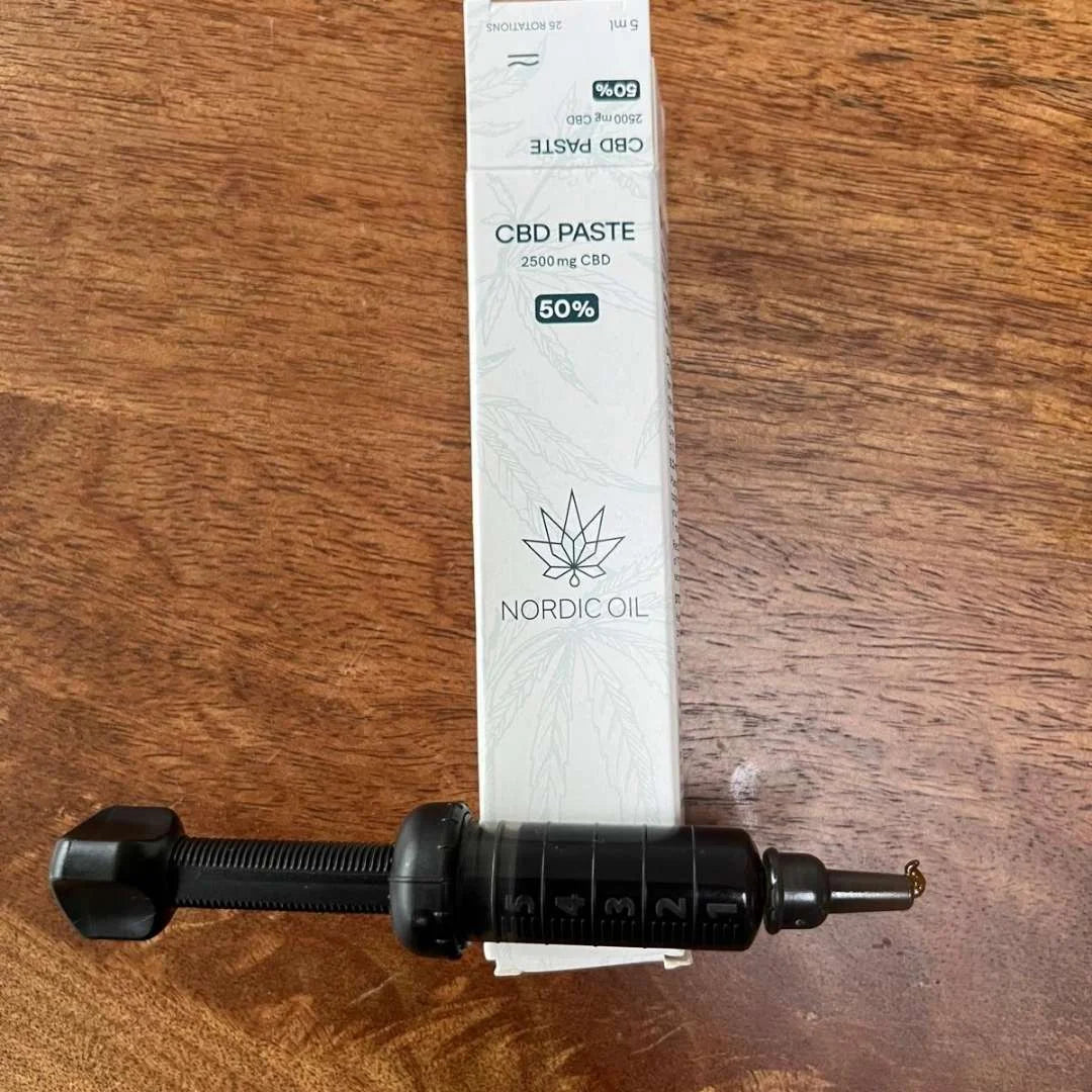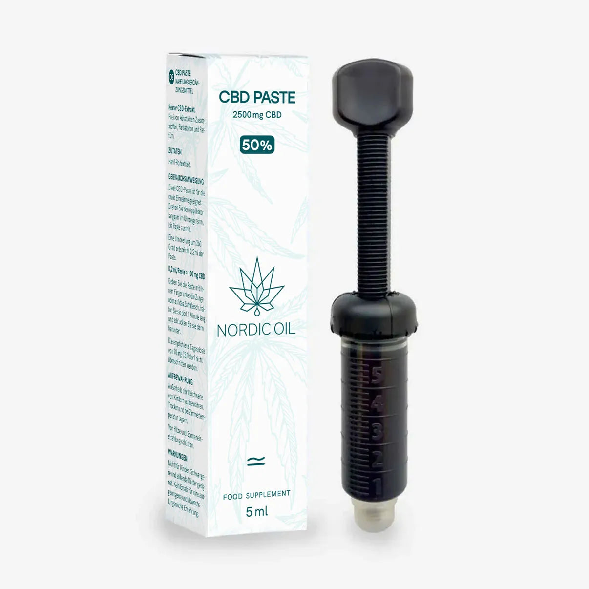 - 5ml paste in dosing dispenser with 50% CBD content (2500mg)
