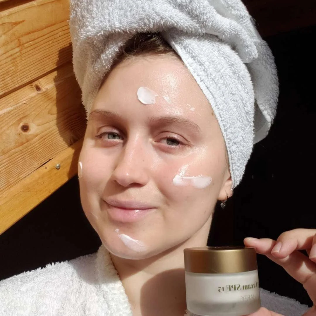 The Happy Day Cream is made exclusively from vegan ingredients and over 90% of natural ingredients.