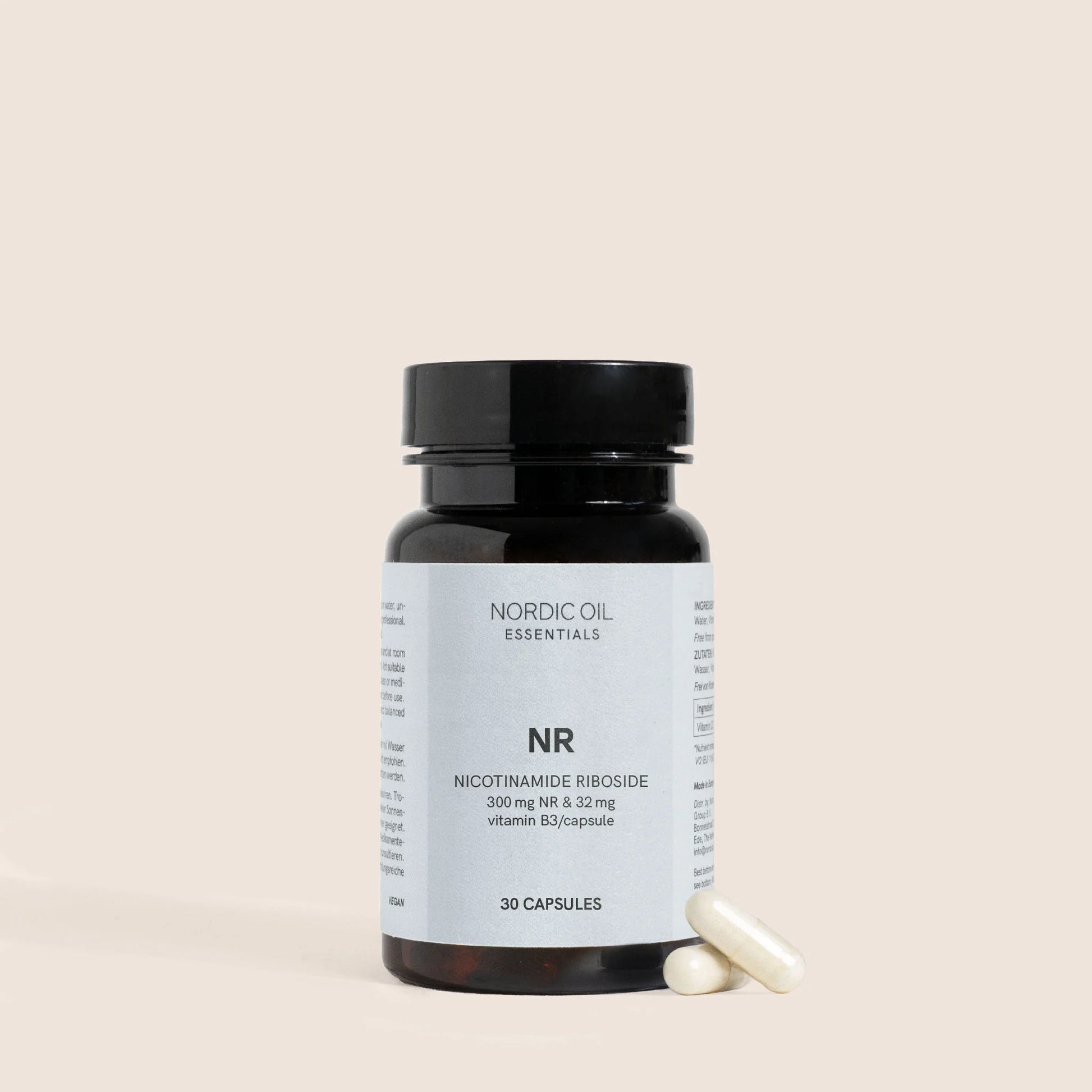 Nicotinamide Riboside (NR) Capsules from Nordic Oil provide 300 mg of NR and 32 mg of Vitamin B3 per capsule, offering a clean and research-inspired approach to daily vitality.