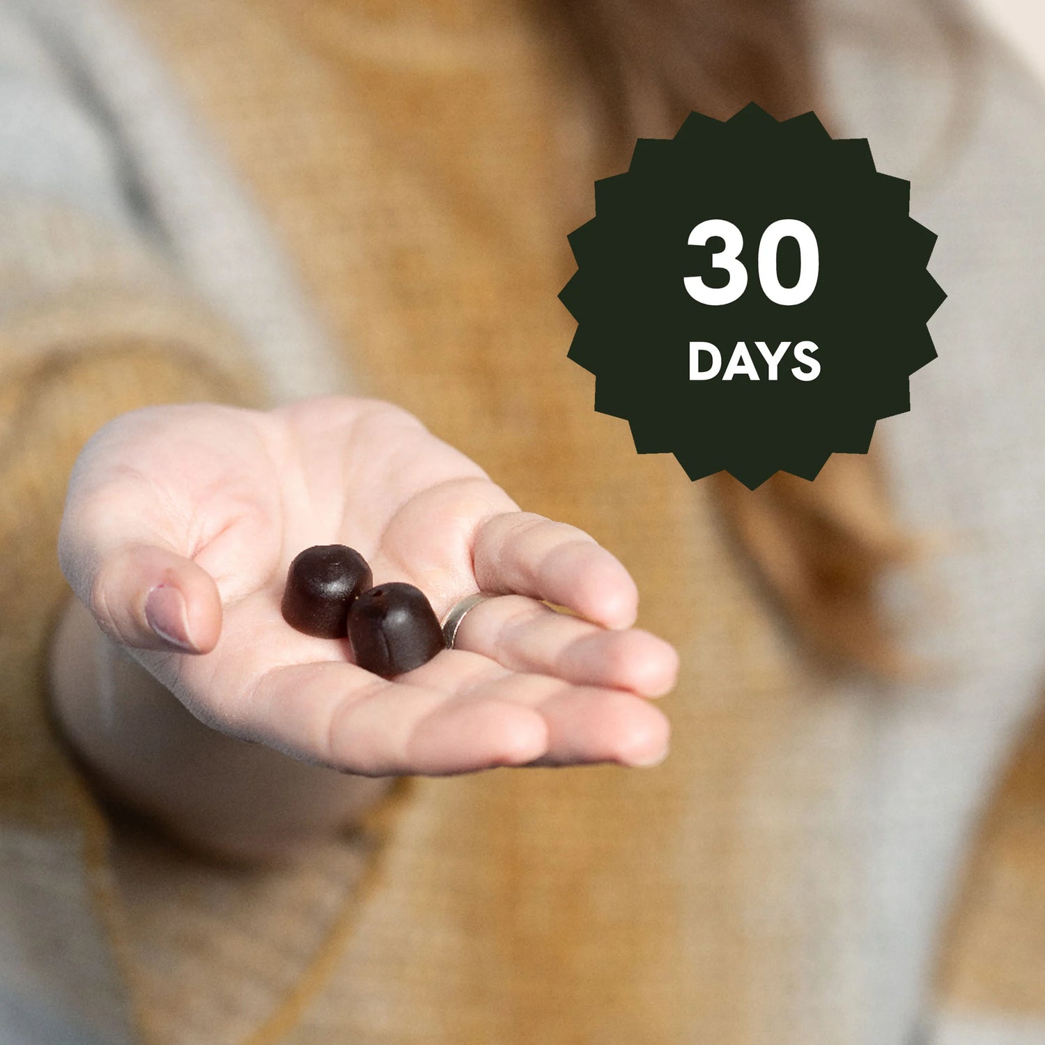 With 60 gummies per bottle, Reishi Gummies provide up to a 30-day supply when taking the recommended 2 gummies per day.