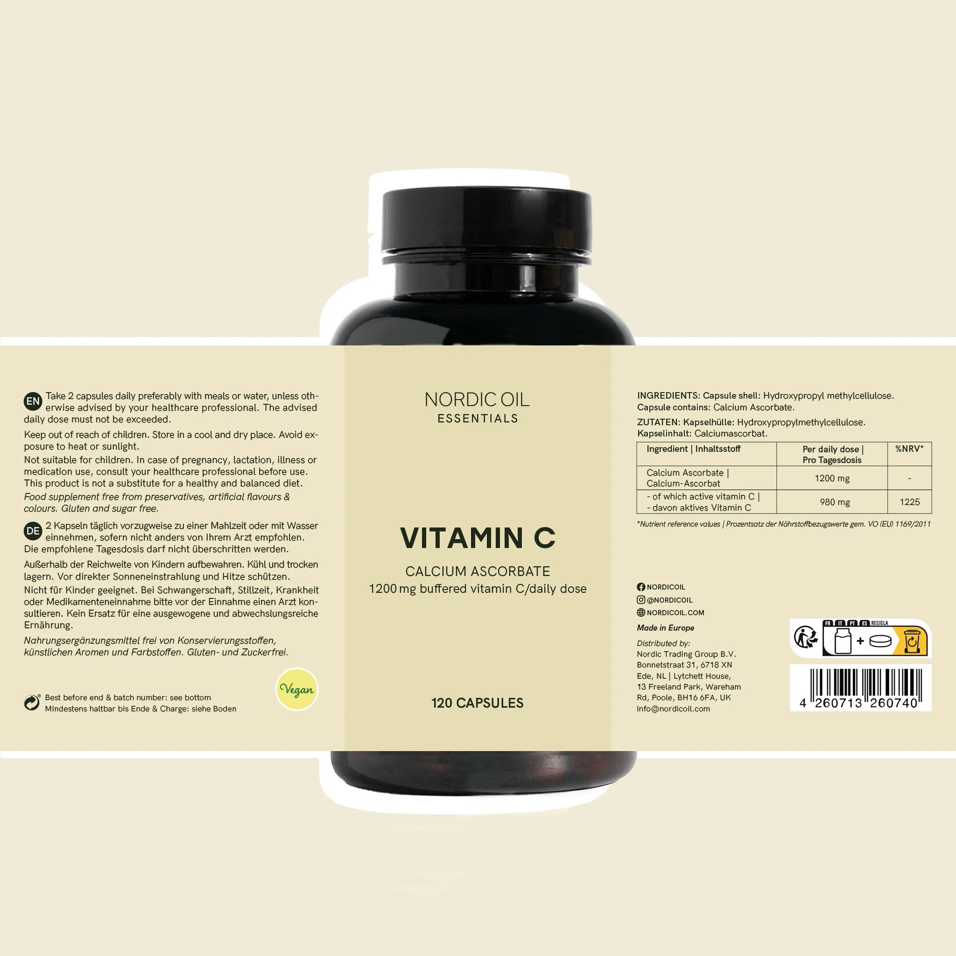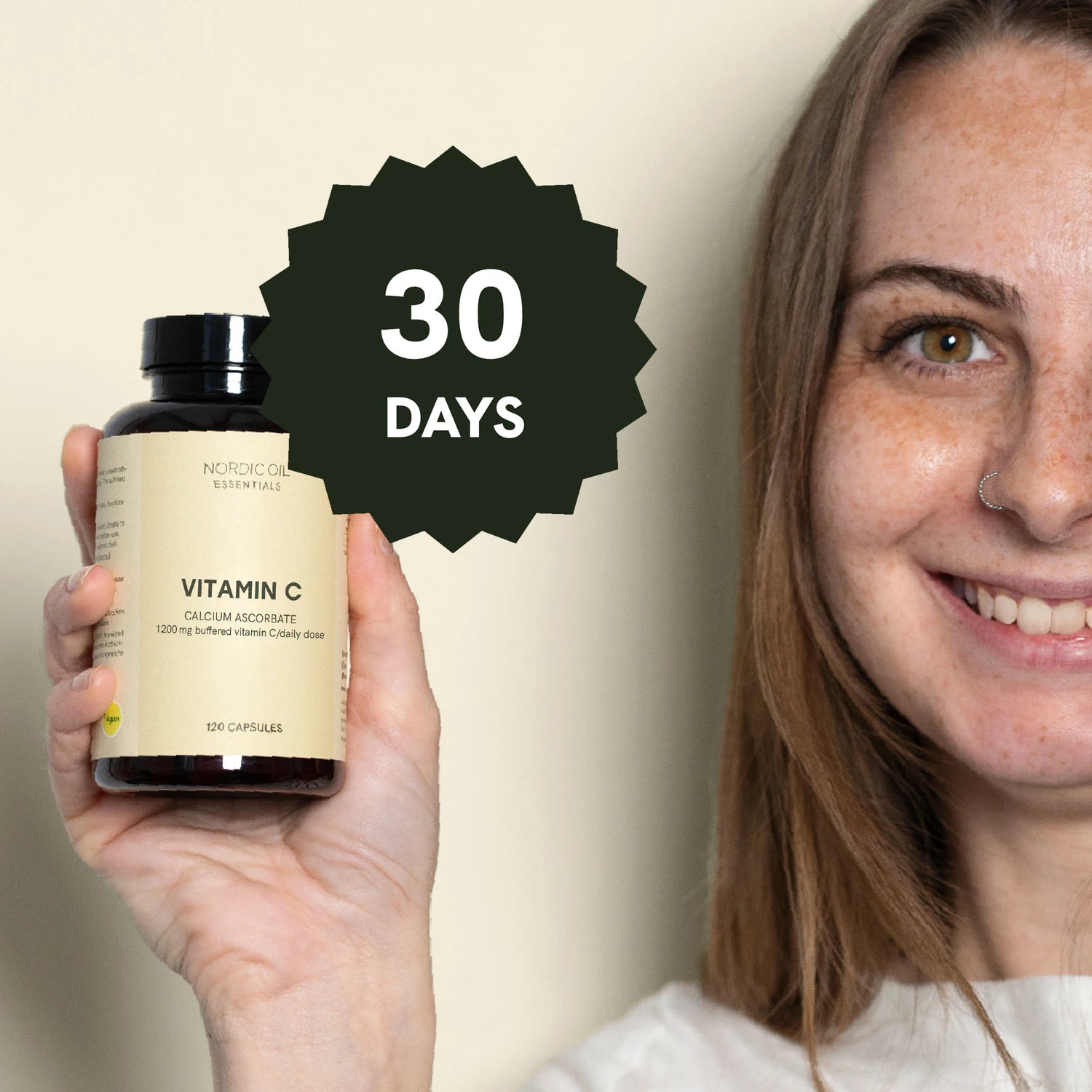 Our high-dose Vitamin C capsules offer a gentle boost, especially during the cold season. Made with Calcium Ascorbate, a non-acidic form of Vitamin C, these capsules are gentle on the stomach, making them perfect even for those with sensitive digestive systems. Each bottle contains 120 vegan capsules, formulated without gluten, lactose, sugar, or artificial additives.
