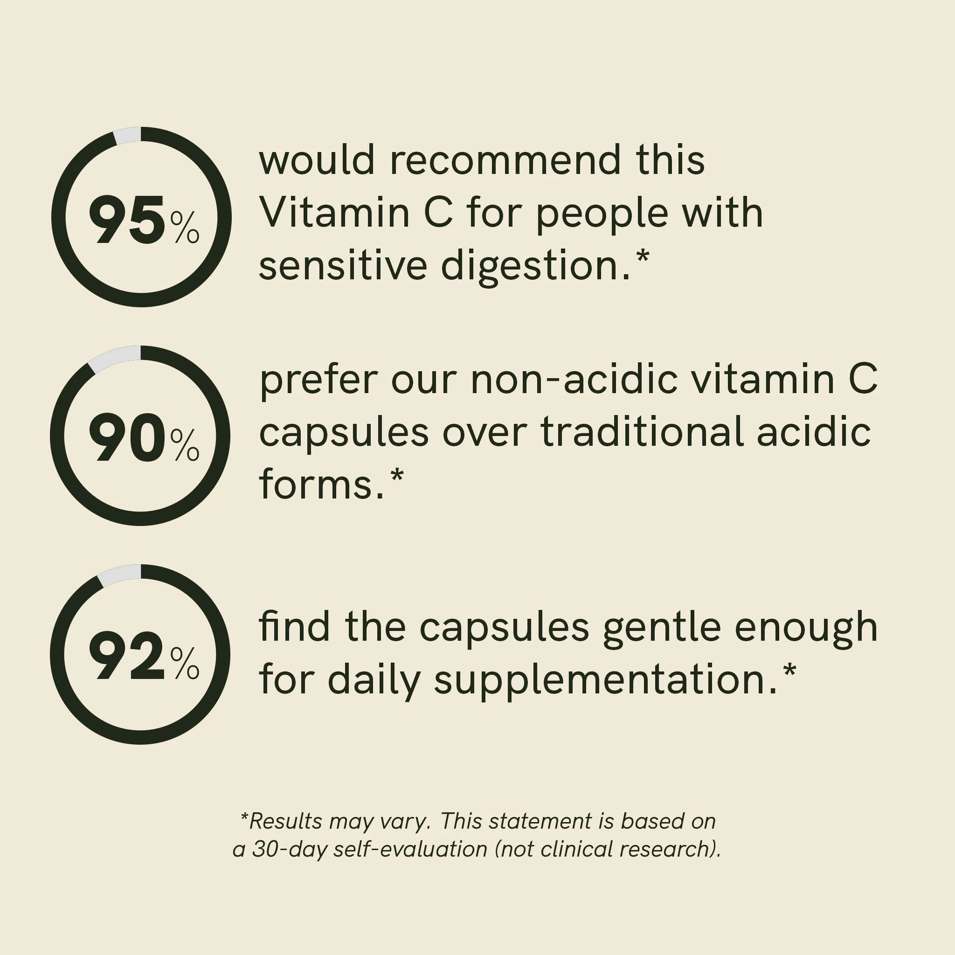 The calcium ascorbate in our capsules is synthetically produced to ensure consistent purity and quality.