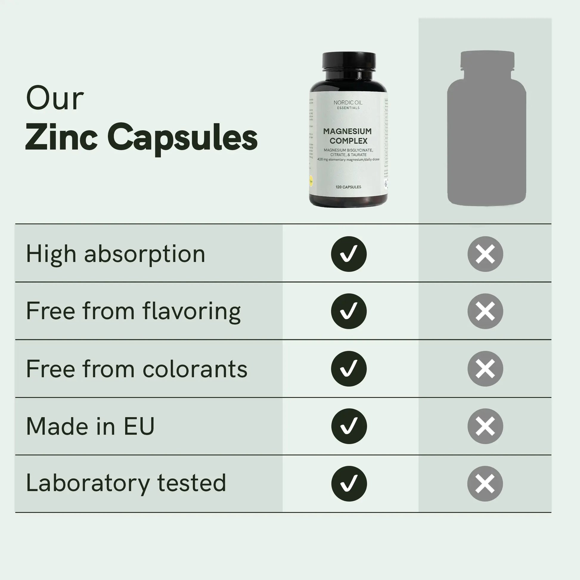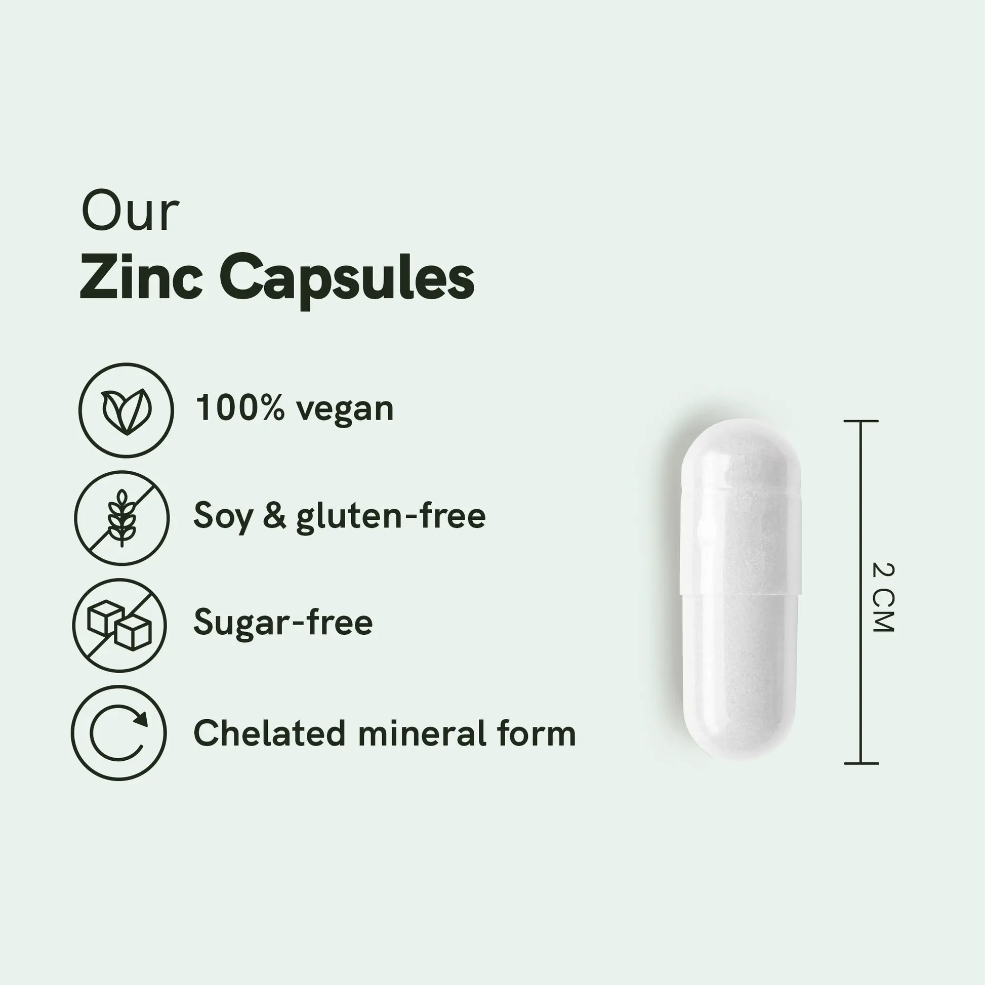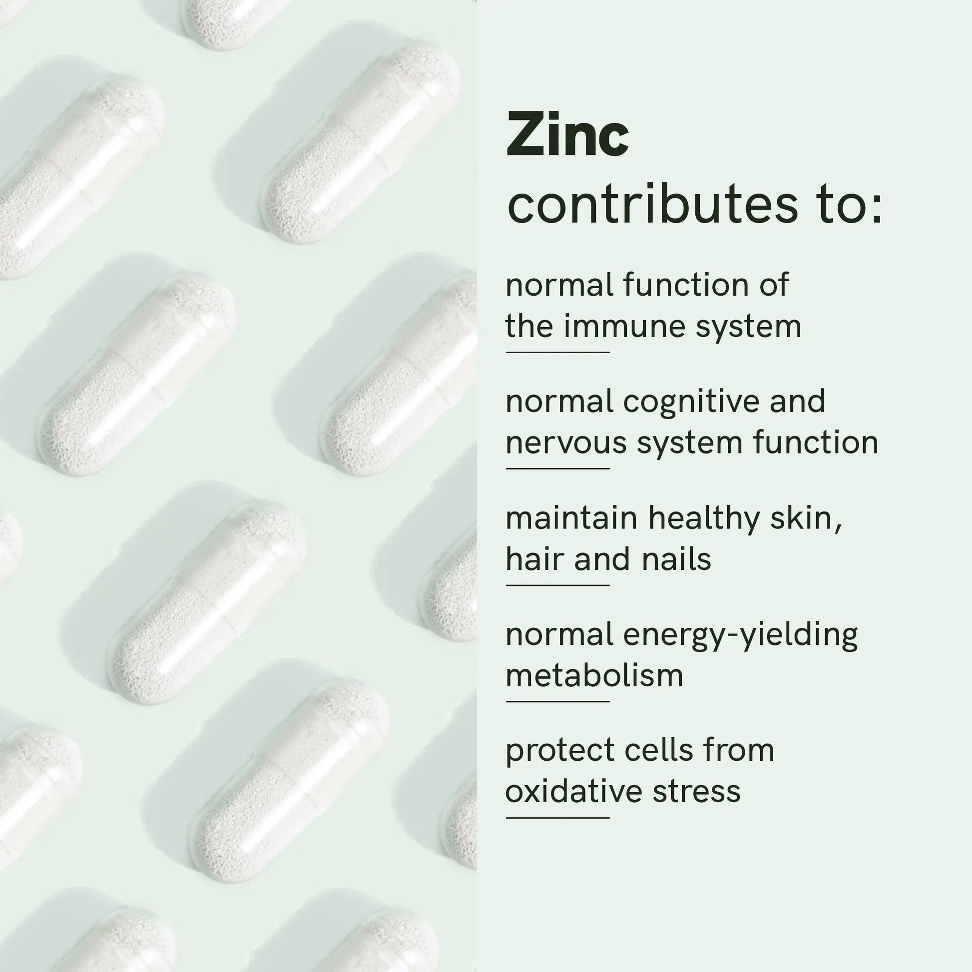 Zinc is an essential mineral that plays a key role in many bodily functions. Taking zinc capsules can support your immune system, promote healthy skin, and contribute to normal cognitive function. Zinc also promotes wound healing, hormone production, and the health of hair, skin, and nails. Regular zinc intake can promote overall well-being and health.